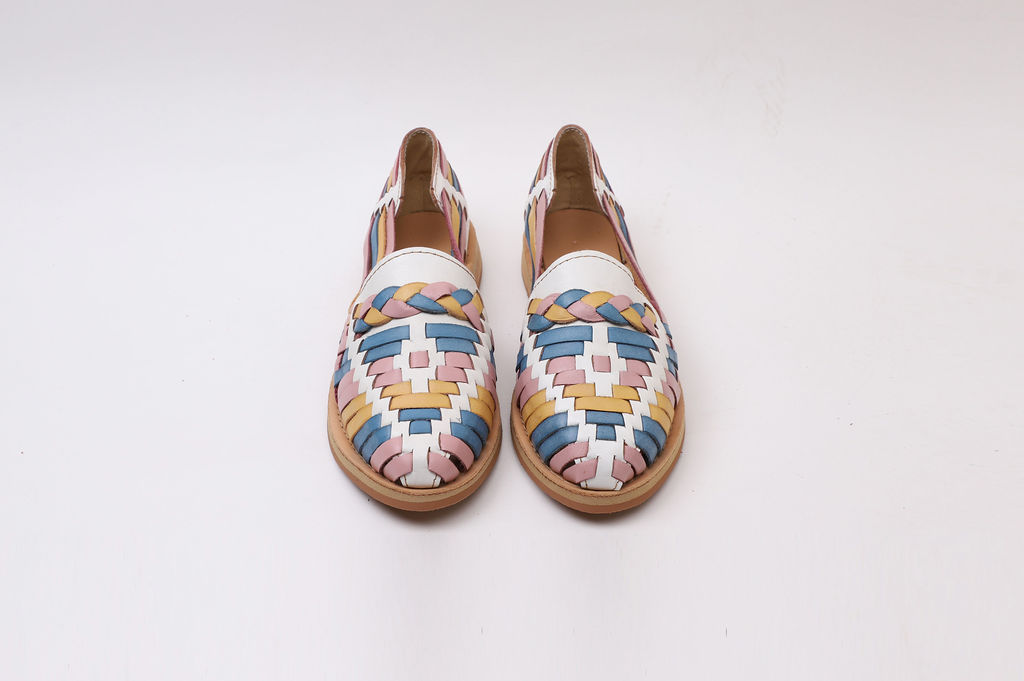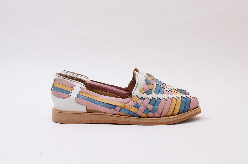 Huarache Rombo, tejido a mano, Blanco y Colores